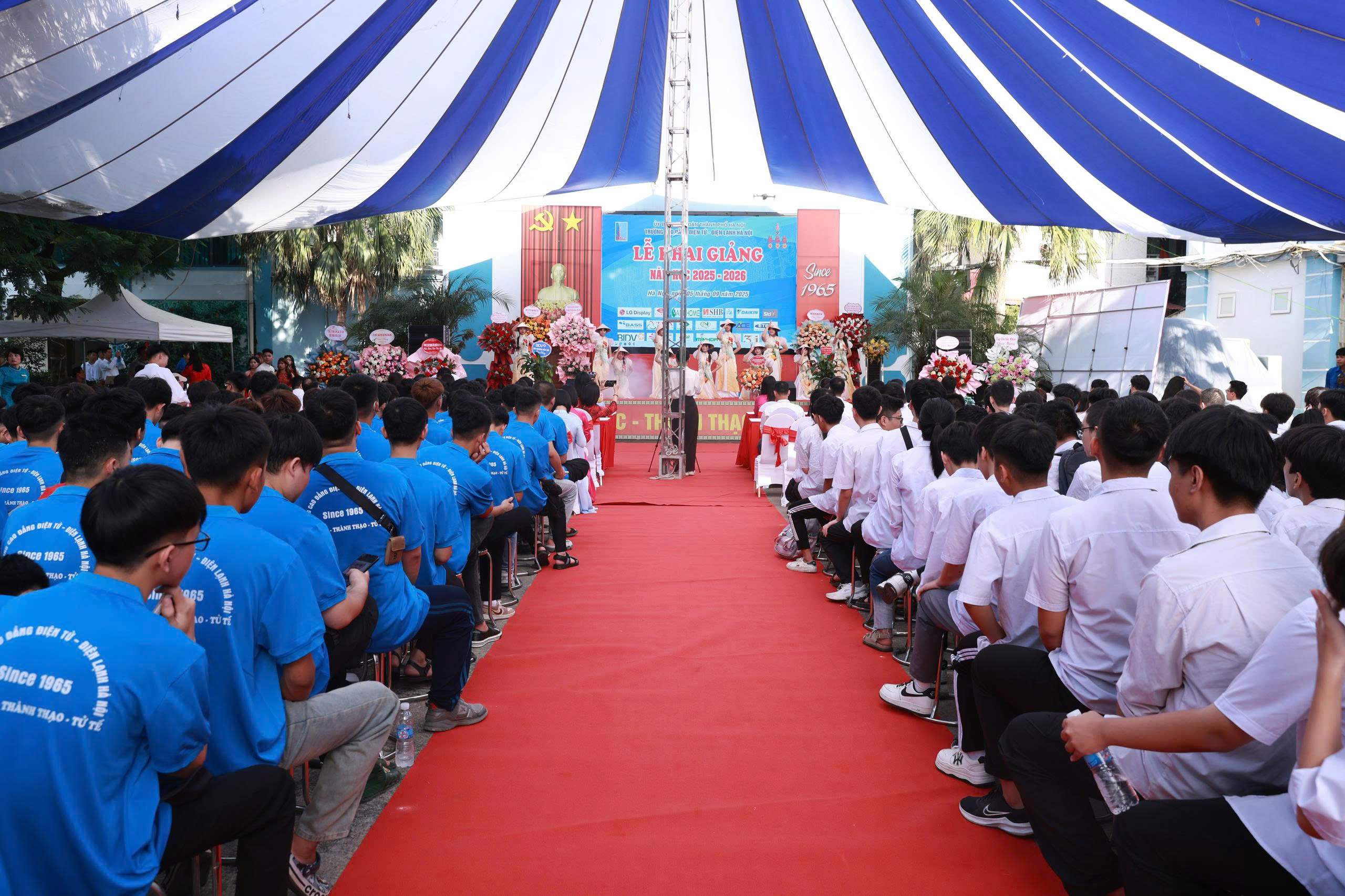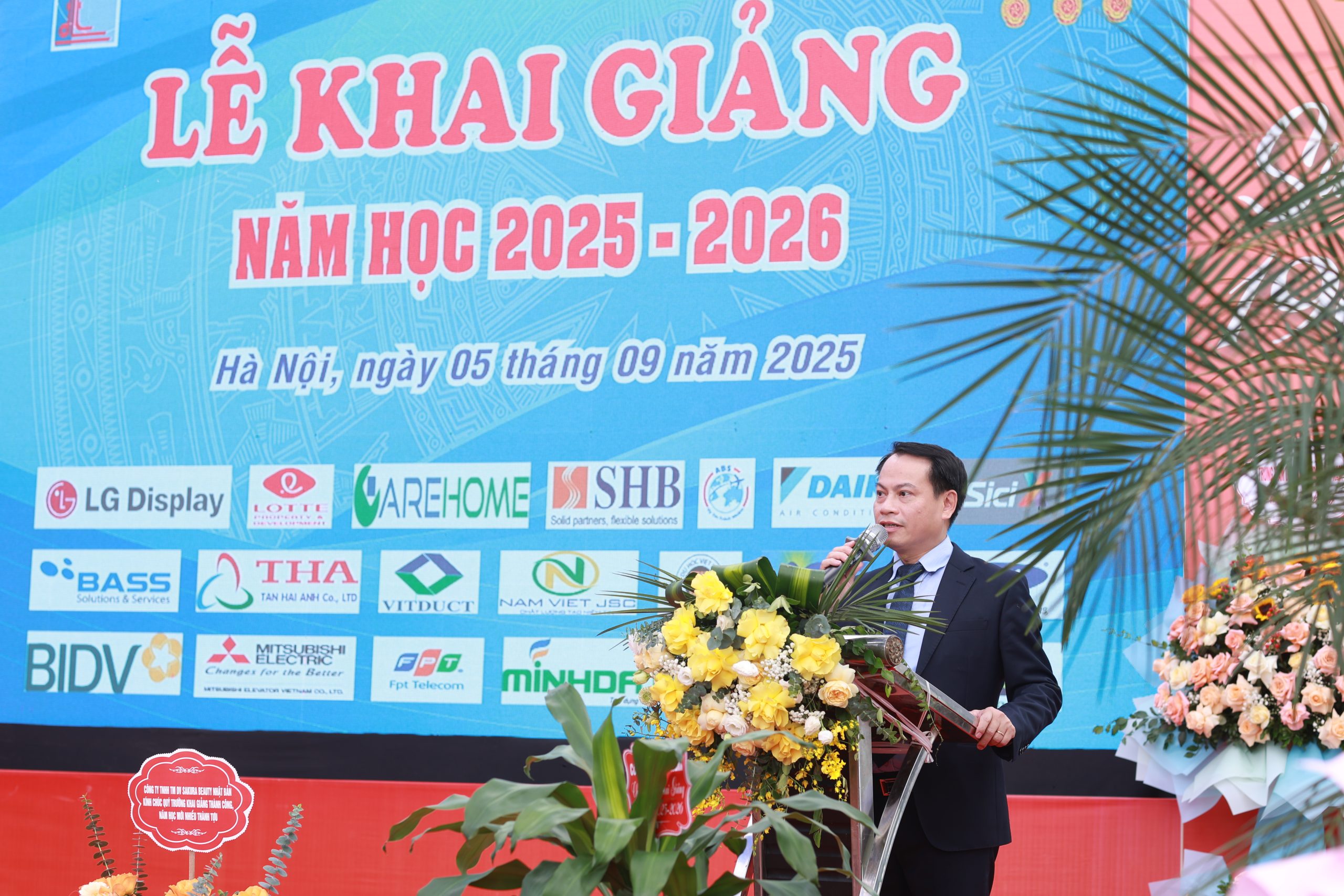 Phát biểu tại Lễ khai giảng, TS. Trần Xuân Ngọc – Hiệu trưởng Nhà trường bày tỏ sự vui mừng khi một năm học mới bắt đầu: “Năm học 2025-2026 đã đến với nhiều nhiệm vụ và thách thức mới. Vẫn biết còn nhiều gian nan vất vả và rào cản cuộc sống nhưng chúng ta hãy vững tin vào tương lai phát triển của Nhà trường. Với sứ mạng đào tạo những thế hệ chủ nhân tương lai của đất nước, chúng ta càng ý thức sâu sắc hơn về trách nhiệm và vinh dự của nghề giáo mà chúng ta đã lựa chọn. Mỗi chúng ta hãy thực sự là những tấm gương của sự sáng tạo, vị tha, tâm huyết, hãy dám tự đổi mới chính mình và trách nhiệm với trọng trách mình được giao phó. Mong cácthầy cô giáo luôn giữ vững ngọn lửa tâm huyết, tình yêu nghề, không ngừng đổi mới sáng tạo, xây dựng nhà trường trở thành môi trường học tập hạnh phúc cho học trò”.